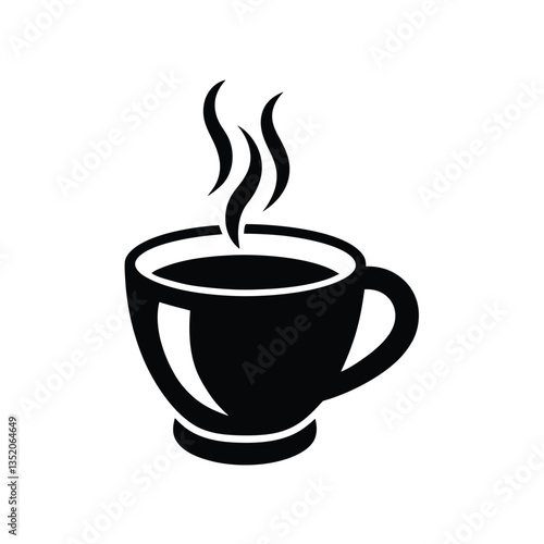 Obraz premium Black Silhouette of Steaming Coffee Cup on White Background - Simple & Elegant Vector Illustration