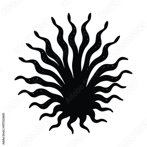 © AIGen Studio, Fototapeta premium Black silhouette of stylized sun with wavy rays vector illustration