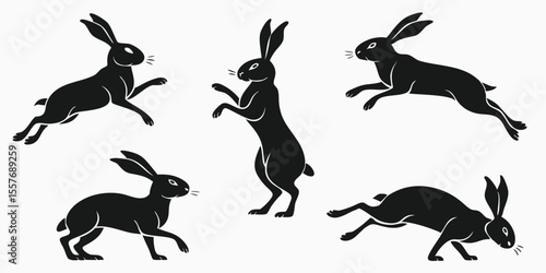 Obraz premium Black Silhouette Rabbits in Motion, Minimalist Art, Jumping Hares