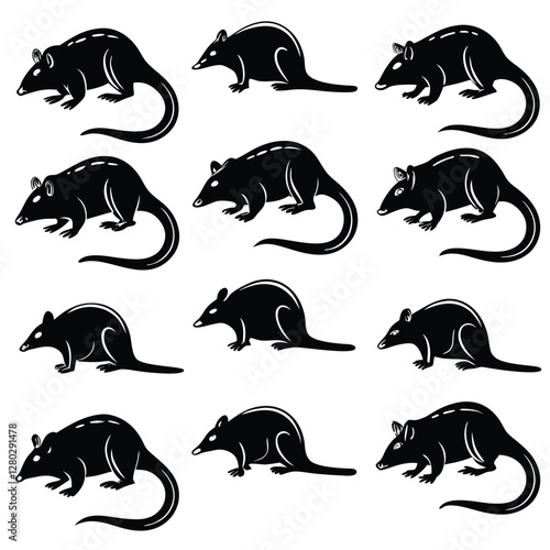 Fototapeta premium Black Silhouette Rat Vector Pattern: Rodent Illustration, Animal Graphic Design, Pest Control Image, Isolated on White Background