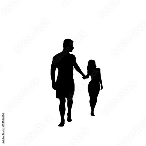 © mast3r, Fototapeta premium Black Silhouette Romantic Couple Holding Hands Full Length Isolated Over White Background Lovers Man And Woman Flat Vector Illustration