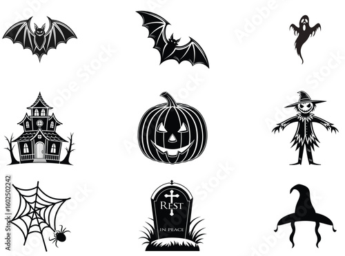 Obraz premium Black Silhouette Set of Classic Halloween Graphics
