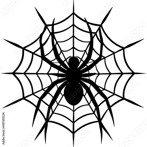 Fototapeta premium Black Silhouette Spider on Web Halloween Design Element