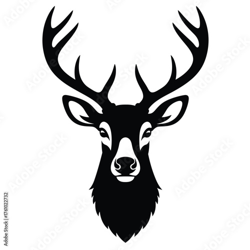 © dipu, Naklejka premium Black silhouette stag head with large antlers deer