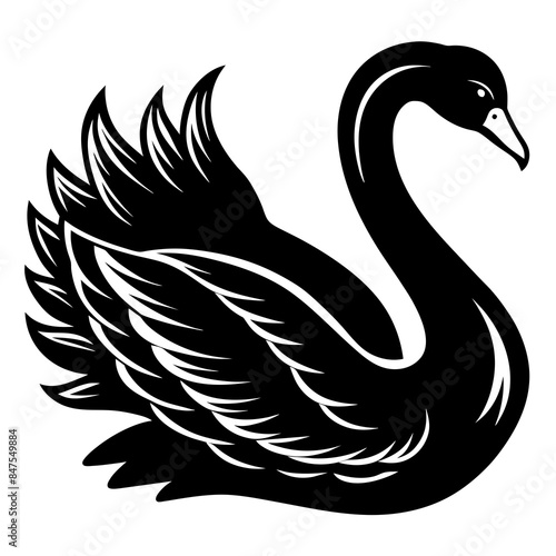 © Vector illustration, Fototapeta premium black silhouette swan vector illustration