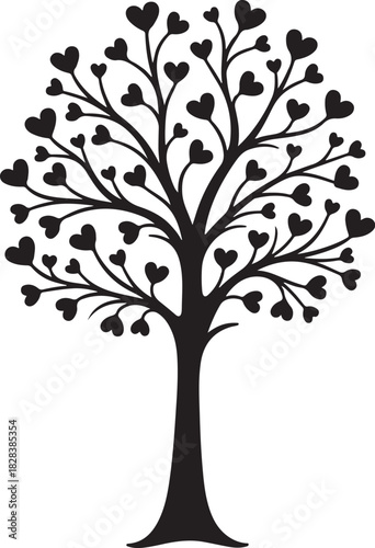 Fototapeta premium Black silhouette tree with heart shaped leaves white