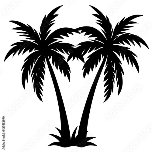 © MD REZAUL, Obraz premium Black Silhouette Two Palm Trees