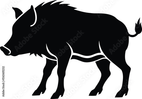 Obraz premium Black silhouette vector illustration of a horse standing in profile on a farm setting
