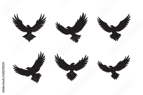© MA, Fototapeta premium Black silhouette vector set of eagle wings in wild flight