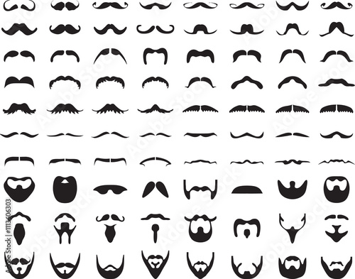 © Design Studio RM, Naklejka premium Black silhouettes of beard and moustache, icons set