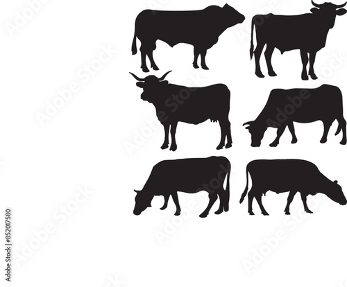 © Vector_art05, Naklejka premium Black silhouettes of cows on a white background