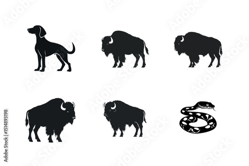 © ABDUL, Naklejka premium Black silhouettes of dog bison and snake