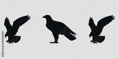 Obraz premium Black silhouettes of eagles. Vector on gray background