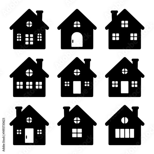 © Rousun, Fototapeta premium Black silhouettes of houses collection in different style on isolated