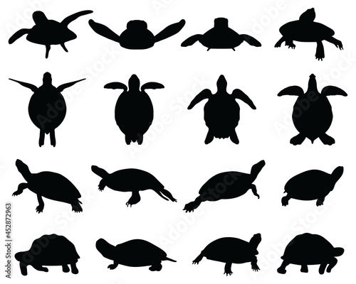 © NikolaM, Obraz premium Black silhouettes of turtles on a white background