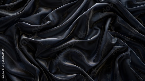 Fototapeta premium Black Silk Background Texture. Smooth, Wavy, Elegant Fabric for Luxury Design
