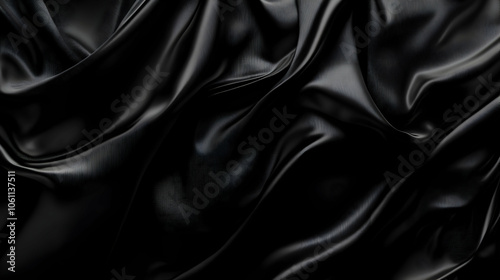 Fototapeta premium Black Silk Fabric Texture, background, abstract, drape, wavy, smooth