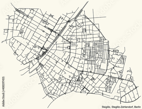 © Momcilo, Fototapeta premium Black simple detailed city street roads map plan on vintage beige background of the neighbourhood Steglitz locality of the Steglitz-Zehlendorf of borough of Berlin, Germany