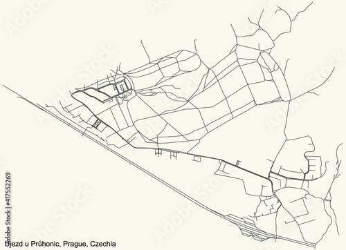 Fototapeta premium Black simple detailed street roads map on vintage beige background of the municipal district Újezd u Průhonic cadastral area of Prague, Czech Republic