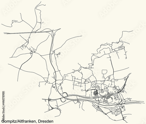 Fototapeta premium Black simple detailed street roads map on vintage beige background of the neighbourhood Gompitz/Altfranken quarter of Dresden, Germany