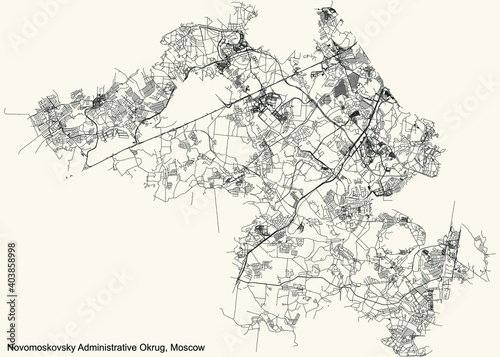 Fototapeta premium Black simple detailed street roads map on vintage beige background of the neighbourhood Novomoskovsky Administrative Okrug of Moscow, Russia