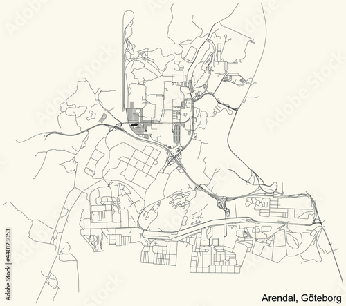 Fototapeta premium Black simple detailed street roads map on vintage beige background of the quarter Arendal district of Gothenburg, Sweden
