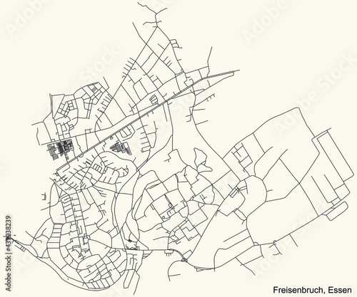 Fototapeta premium Black simple detailed street roads map on vintage beige background of the quarter Freisenbruch Stadtteil of Essen, Germany