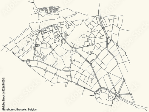 © Momcilo, Fototapeta premium Black simple detailed street roads map on vintage beige background of the quarter Ganshoren municipality of Brussels, Belgium