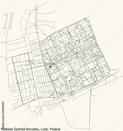 © Momcilo, Fototapeta premium Black simple detailed street roads map on vintage beige background of the quarter Retkinia Zachód-Smulsko district of Lodz, Poland