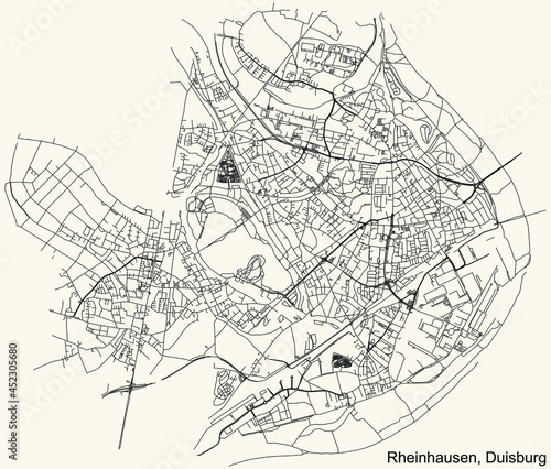 © Momcilo, Fototapeta premium Black simple detailed street roads map on vintage beige background of the quarter Rheinhausen district of Duisburg, Germany