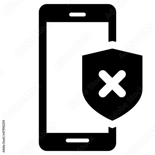 © aiconslab, Obraz premium Black single mobile secure failed warning filled icon, simple digital flat design pictogram, infographic vector for app logo web website button ui ux interface element isolated on white background