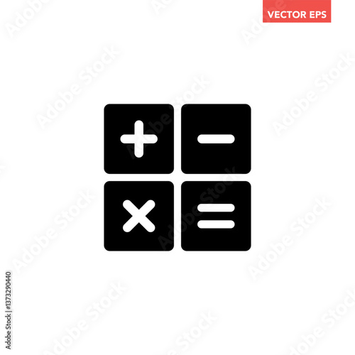 Fototapeta premium Black single square math buttons icon, simple calculator keys flat design vector pictogram, infographic interface elements for app logo web button ui ux isolated on white background