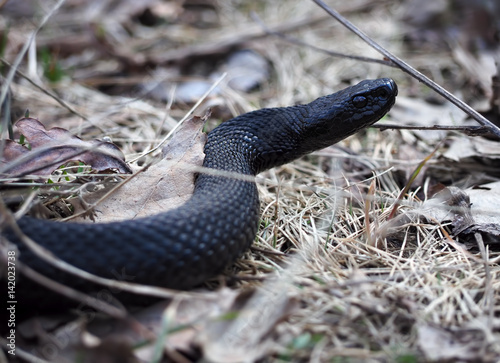 © Sergii Mironenko, Obraz premium Black snake at the forest