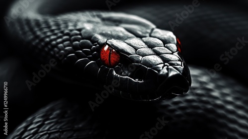 © Zeva, Fototapeta premium Black snake close-up, red eyes, dark background, nature photography, wildlife