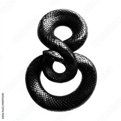 © lertsakwiman, Obraz premium Black snake coiled in a unique formation, creative isolated background.