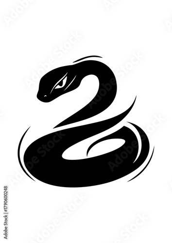 Fototapeta premium Black snake illustration in minimalist style with sleek curves