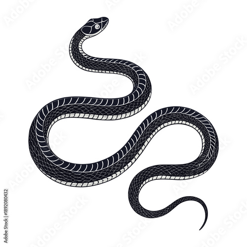 © Elena, Obraz premium Black snake illustration with intricate patterns on white background