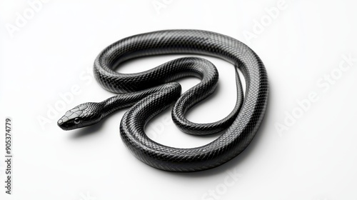 Obraz premium Black Snake Isolated on White Background Displaying Curved Body Position