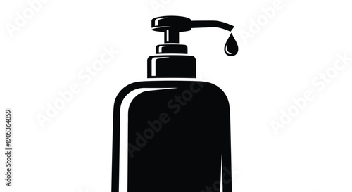 Fototapeta premium Black soap dispenser bottle with pump and single drop on white background