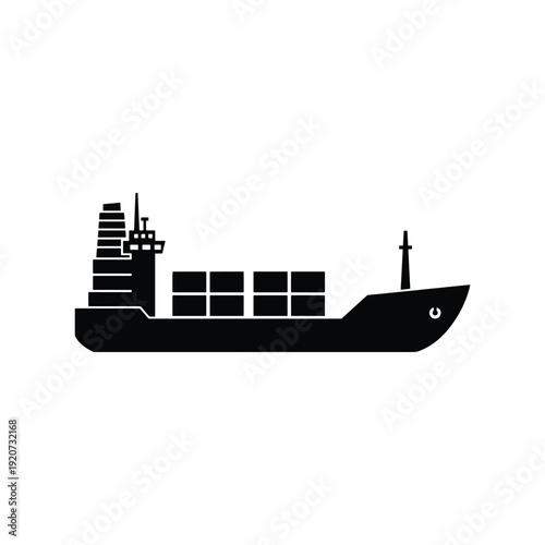 Obraz premium Black Solid Cargo Container Ship Silhouette Icon Vector