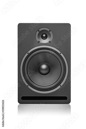© Denis Rozhnovsky, Obraz premium Black speaker isolated on a white background.