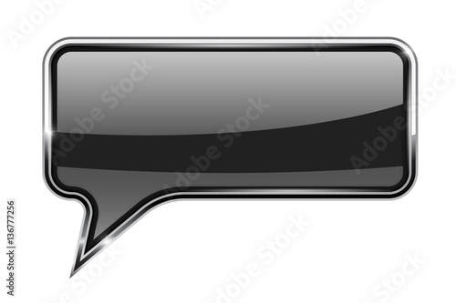 © savanno, Fototapeta premium Black speech bubble. Rectangular 3d icon with chrome frame