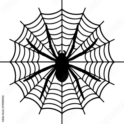 © lindely, Obraz premium Black spider on web in a minimalist vector design