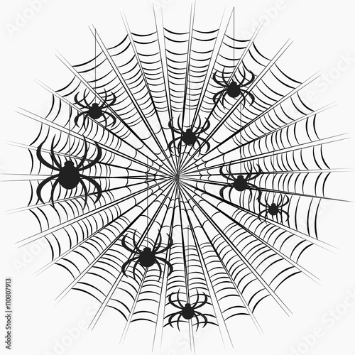 © orpoliii, Obraz premium black spiders on a web pattern on a white background.