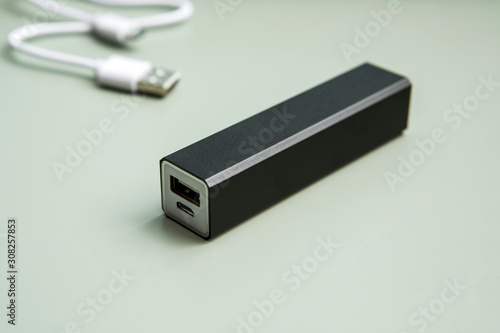 Fototapeta premium black squared power bank with usb
