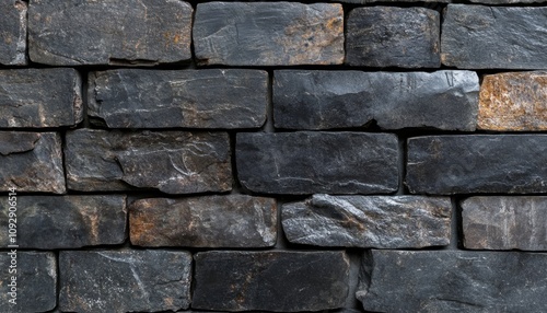© Mumtaz, Fototapeta premium Black Stacked Stone Wall Texture with Natural Patterns