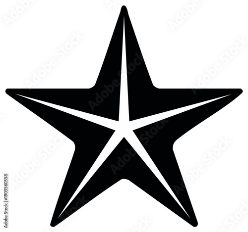 Obraz premium Black Star Shape with White Outline Symbol or Icon for Design Concepts or Logo