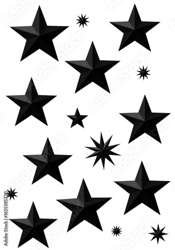 Obraz premium Black Star Shapes Isolated On Transparent Background Digital Abstract Illustration