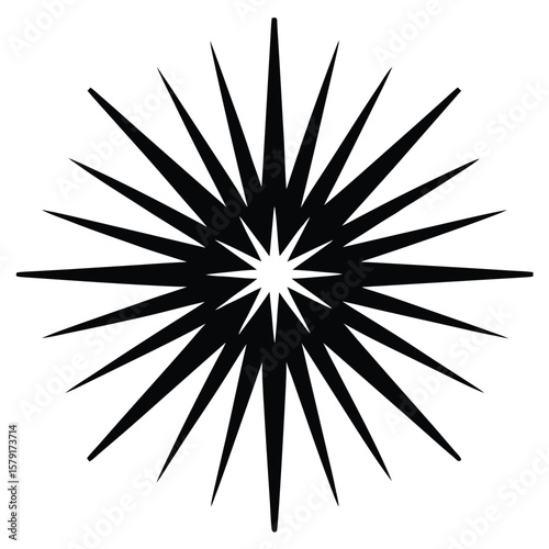 Fototapeta premium Black Star with Sharp Rays Pointing Outward on a White Backdrop Design