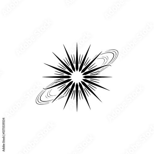 Obraz premium Black Starburst & Orbit Design on White Background